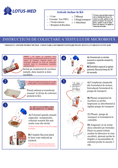 Pentru a primi un rezultat corect este OBLIGATORIU să completați corect și complet toate informațiile solicitate pe etichete și pe formularul de recoltare.